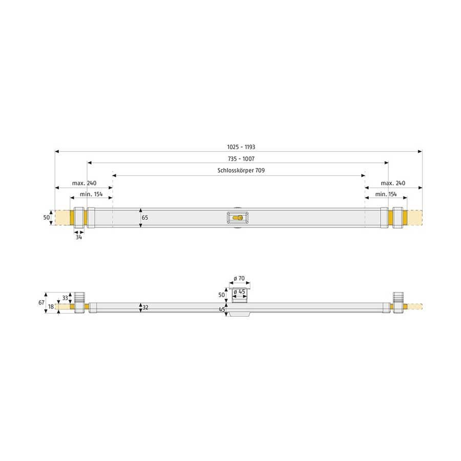 Sichert die Tür über die gesamte Breite! Auf Türbreiten von 735 - 1030 mm einsetzbar. VdS-anerkannt, DIN-geprüft: Geprüfte und bestätigte Sicherheit, beide Riegel greifen fest in die mit dem Mauerwerk verankerten Schließkästen ein