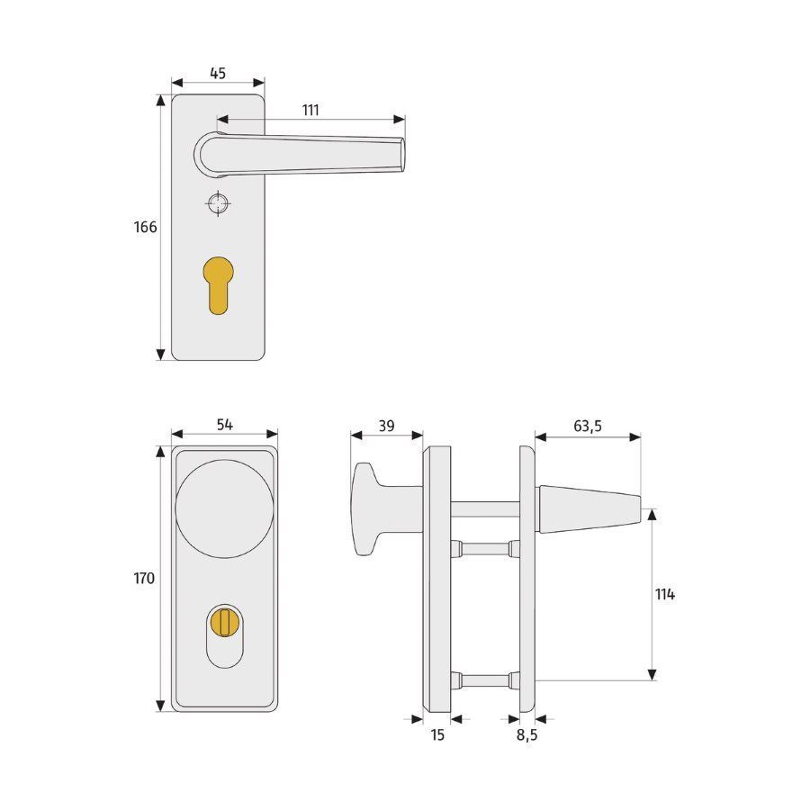 Griffplatte außen, Drücker innen
