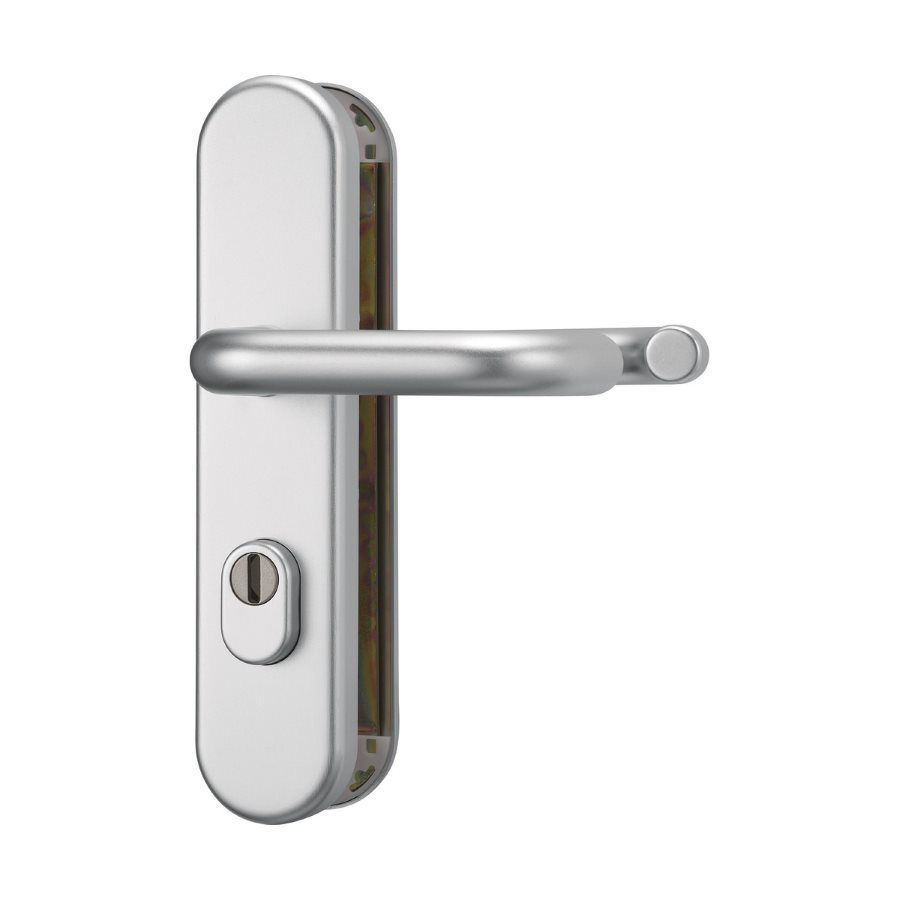 Für nach innen öffnende Fenster und Fenstertüren, Hebe- und Schiebetüren auf der Schließseite. Für Kunstoff- und Metallfenster geeignet.