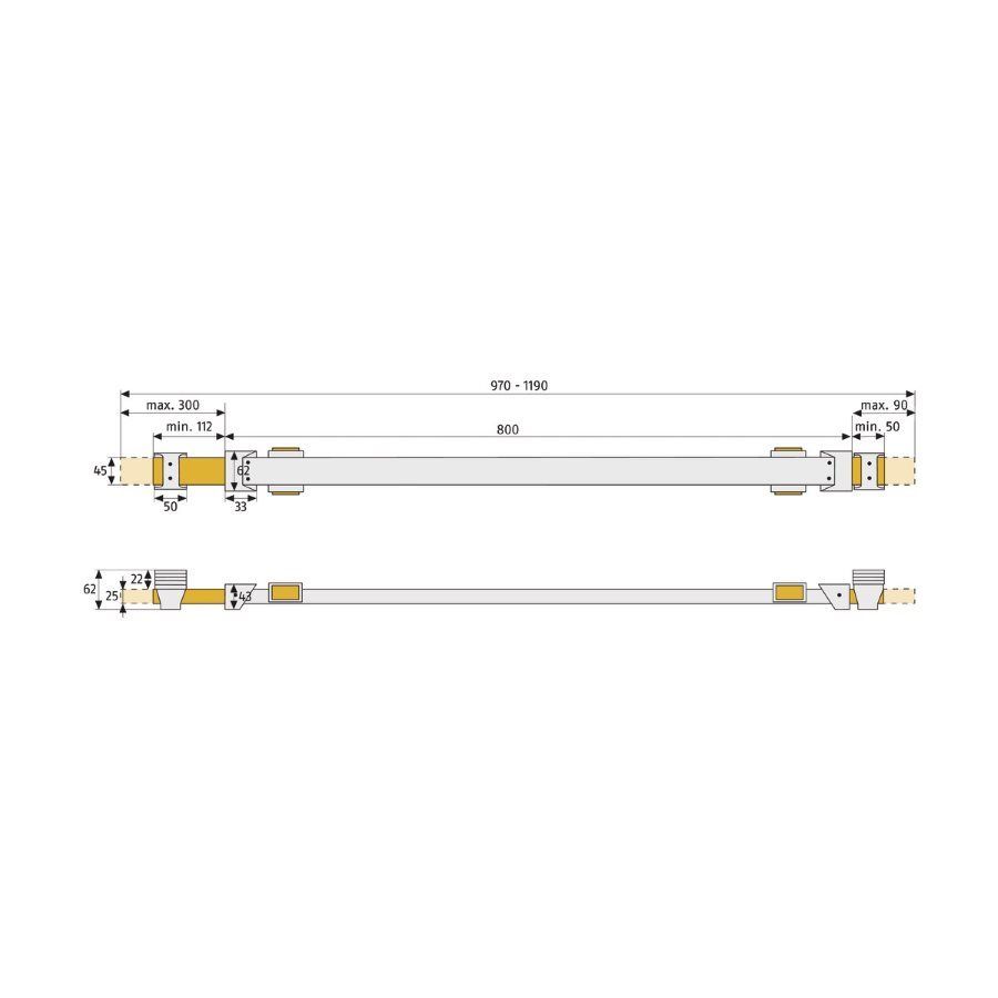 Je nach Höhe der Fenster werden 1 oder mehrere Stangen, übereinander links und rechts im Mauerwerk eingelassen